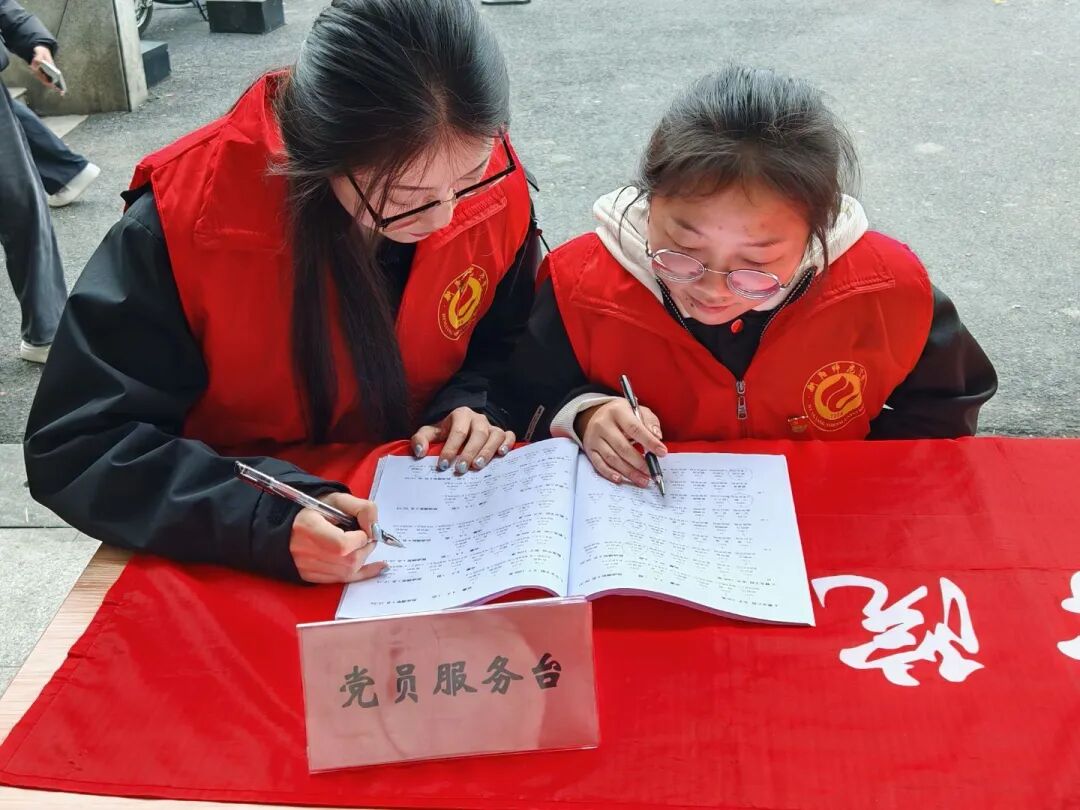 校运会期间,学生党员主动扛起 “党员服务台” 的责任,以饱满热情全身心投入服务工作。他们提前梳理参赛名单、核对运动员信息,耐心引导选手完成检录,用严谨细致保障赛事高效有序推进;同时备齐饮用水、应急药品等物资,按需快速配送,让暖心关怀覆盖赛场每个角落。从晨光微露到暮色降临,服务台的红色志愿马甲始终是赛场亮眼风景,学生党员们以一件件具体行动,在平凡岗位上生动诠释了 “服务不缺位” 的责任与担当。