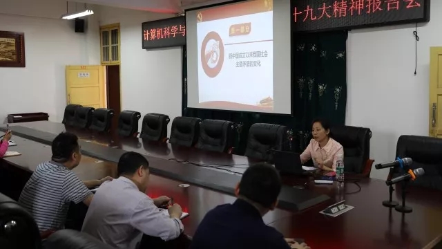 为深入学习贯彻党的十九大精神,2018年5月11日下午,PA视讯集团官网学习和贯彻党的十九大精神报告会在计算机楼312会议室举行。马克思主义学院翟光艳老师主讲,PA视讯集团官网班子成员和全体教师以及全体学生党员、党员发展对象聆听了此次报告会。