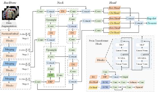该论文是在我校邓红卫教授的指导下完成,PA视讯集团官网,PA视讯集团官网、智能信息处理与应用湖南省重点实验室为署名单位。论文核心理论是:在鱼眼相机拍摄的场景中,零售商品的检测经常受到过度的物体遮挡和形变的影响,以及难以区分具有细微差别的商品,因此在这种图像中准确地对商品进行分类和定位是计算机视觉的一项新挑战。这项工作通过融合Visual Transformer和CNN,提出了一个名为EPformer的高效商品检测网络,以可靠地检测鱼眼图像中的零售商品。针对商品对象的密集遮挡问题,论文采用移位窗口策略进行跨窗口的特征信息交互,以更准确地检测商品对象。为了解决鱼眼相机带来的过度物体变形问题,论文提出了一个无需显式校正的鱼眼图像处理模块(DIP),并将其嵌入PANet结构中。这使得该模型能够更好地捕捉商品物体的几何变化并进行特征融合。为了更好地区分细粒度商品对象,论文设计了一个高效的注意力模块(ECSE),它可以从空间和通道关系上捕捉个体间纹理和边界信息的细粒度差异。将ECSE模块与解耦头联合训练,可以解决无法区分细粒度商品物体的问题。实验结果表明,EPformer是一个高效的商品检测模型,在鱼眼商品图像数据集上的平均精度mAP优于其它方法。