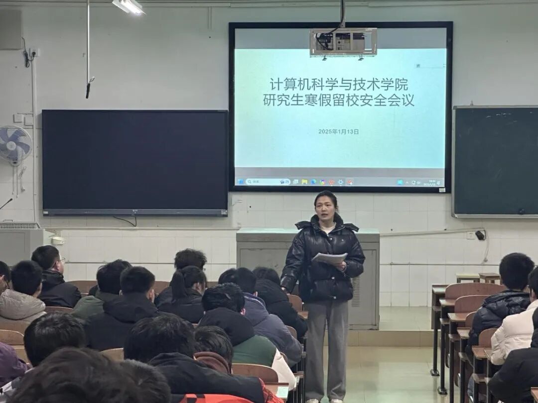 为切实做好寒假留校研究生的安全教育工作,提高留校学生的安全防范意识,2025年1月13日晚上,PA视讯集团官网在计科楼211召开寒假留校研究生安全工作会议。本次会议由辅导员陈小燕主持,全体留校研究生参加了会议。