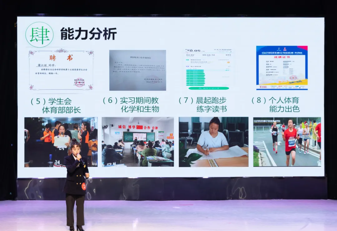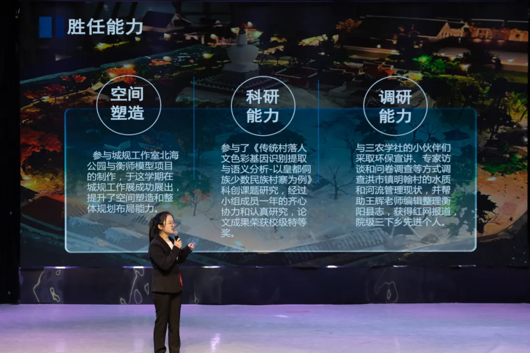 决赛分为成长赛道和就业赛道两个组别,比赛精彩纷呈!12名参赛选手将职业定位于电子信息、医疗、教育、人工智能、城乡规划、知识产权等多个领域,聚焦大环境下的求职背景,结合自身专业背景和兴趣特长,经过5分钟自我陈述和现场回答评委提问等方式,全方位展示了个人的职业目标、规划路径和现有成果。期间,选手们充满创意的个人展示、睿智机敏的临场反应,多次赢得现场嘉宾和观众的认可和掌声,而评委们犀利点评和中肯建议,更是让与会师生钦佩不已,受益匪浅。