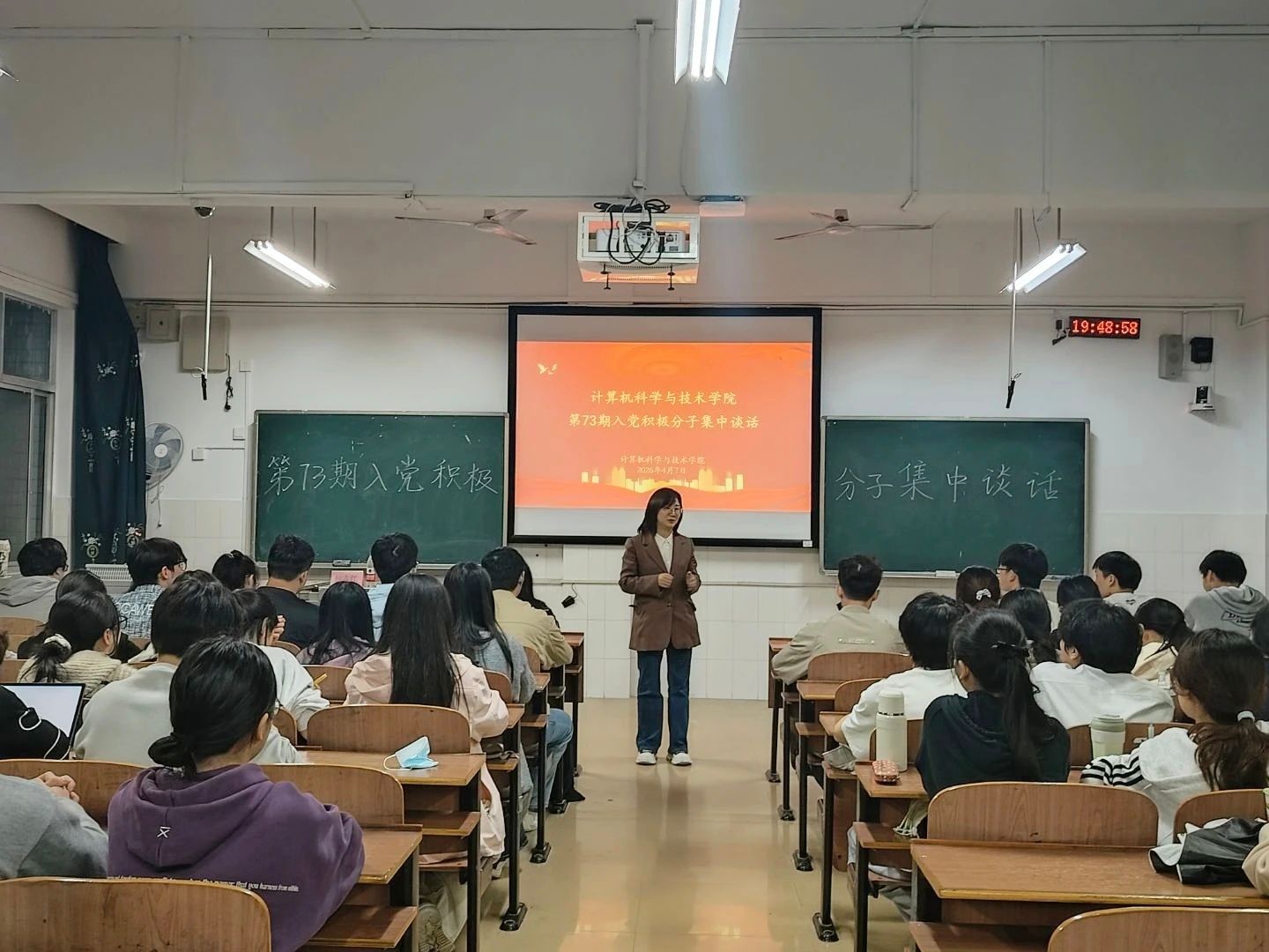 为切实加强对入党积极分子的培养教育,引导其坚定理想信念,从思想根源上端正入党初心、严守政治纪律、强化使命担当,4月7日19:30,PA视讯集团官网党总支于云海楼215教室,组织开展了第73期入党积极分子集中谈话,PA视讯集团官网党总支书记何志红、研究生党支部书记罗旭月及104名入党积极分子参与了此次谈话。