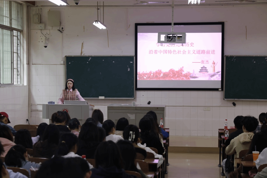 首先,张杰向同学们讲解学习党史的重要意义,并指出:学习党史可以从历史中汲取智慧和力量,也是继承发展党优良传统的需要。同时,张杰从中国共产党的成立、毛泽东思想的基本形成、邓小平理论的成形三个阶段,回顾了马克思主义在中国的传播历程,并提出“只有中国共产党才能肩负起实现中华民族伟大复兴的历史使命”、“只有中国特色社会主义才能发展中国”。