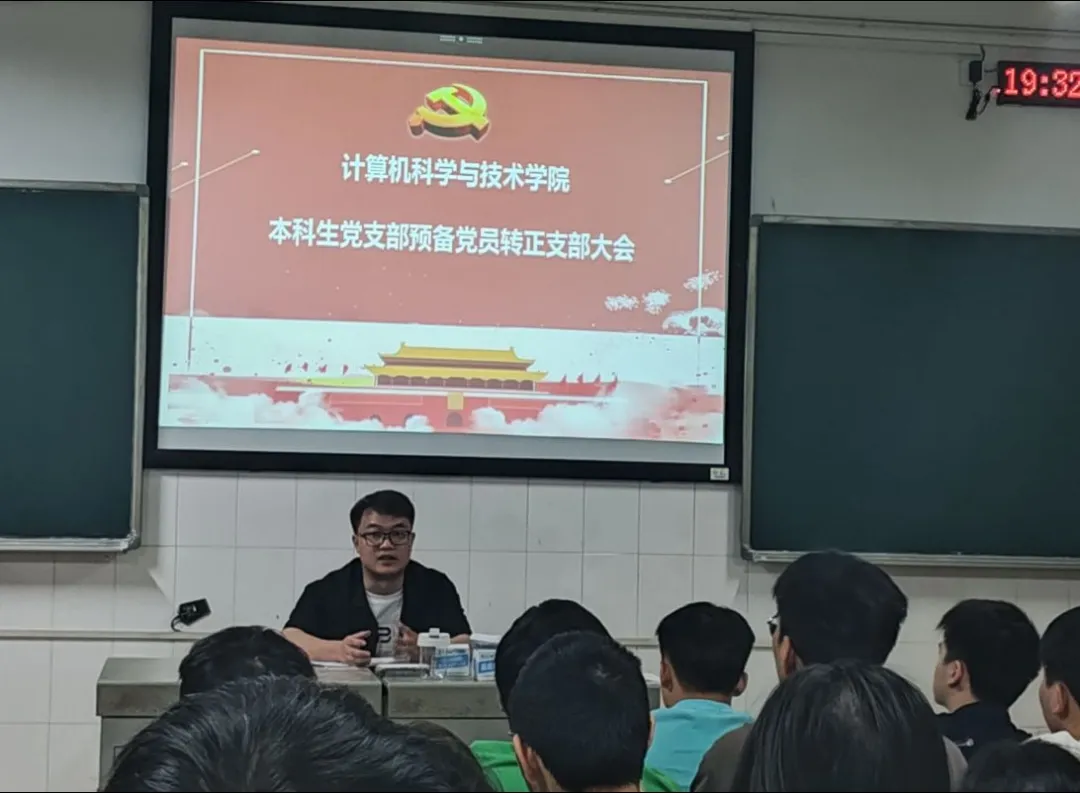 13日15:00,研究生党支部预备党员转正支部大会在计科楼312会议室举行。会议上,预备党员何晨辰汇报了本人在预备期间的表现情况。接着,支部委员、与会党员讨论、报告何晨辰在预备期间的教育和考察情况,认为何晨辰同志思想、学习、工作等方面均符合中共正式党员条件,可以按期转正。