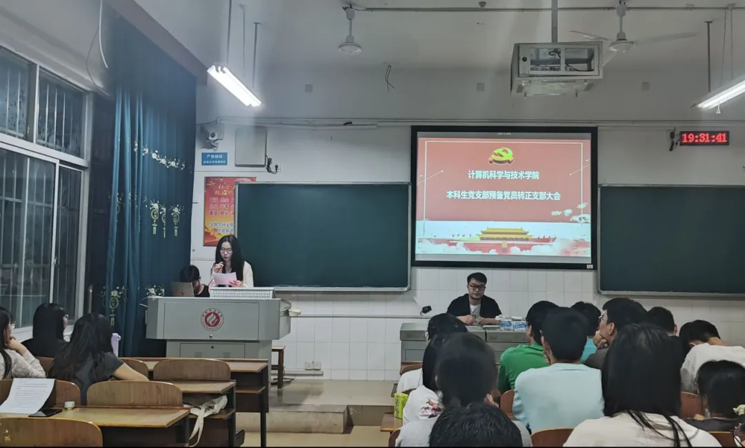 5月13日19:30,本科生党支部于计科楼217教室召开预备党员转正支部大会。会议伊始,曾振华老师对即将转正的预备党员表示祝贺,并强调:身为党员要树立大局意识,始终把个人的追求、自我价值的实现与党的奋斗目标紧密联系起来,在为人民服务的实践中充分体现人生的价值;他对与会党员提出8字希望:“凡人善举,最为动人”,期望各位同志能够从身边点滴小事做起,做一个合格的共产党员。
