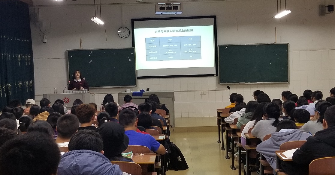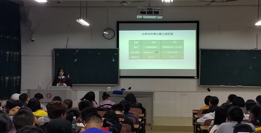 2018年10月25日下午PA视讯集团官网辅导员谢媛老师为同学们开展心理适应讲座。谢媛老师讲大一新生刚入大学普遍存在的心理落差,紧接着老师强调了时间的重要性以及大学思潮的问题,再是几个简单的趣味心理测试,最后老师跟我们分享了一些关于心理方面的电影和电视剧,书籍以及很多富有哲理的名言警句。