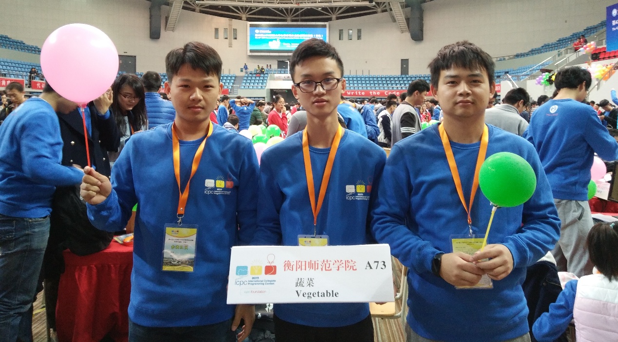 11月5日,全国高校第42届ACM国际大学生程序设计竞赛亚洲区域赛(青岛)在中国石油大学(华东)落下帷幕。本次大赛是由来自于全国包括朝鲜金日成综合大学、港大、清华、北大上交在内的226所大学363支队伍参加。刘新宇老师指导的2015级学生陈明慧、2016级学生陆俊杰和2016级学生张凯旋组成的“蔬菜(Vegetable)”队荣获铜奖。 本次比赛是我校在ACM/ICPC中首次拿到全国区域赛现场决赛的参赛资格,同时也是我校在此类竞赛首次冲出湖南省并摘得全国性的铜奖。