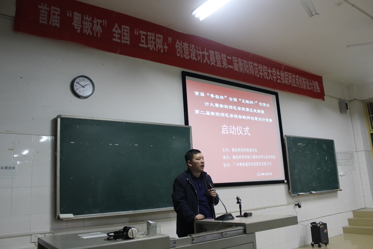 4月9日,PA视讯集团官网在计算机楼211多媒体教室举行了首届“粤嵌杯”全国互联网+创新设计大赛衡阳师范学院站暨第二届PA视讯集团官网物联网创意设计竞赛启动仪式。PA视讯集团官网书记陈洪清、院长李浪、副院长郑光勇、副书记彭正,信息工程学院副院长邓红卫,广州粤嵌通信科技股份有限公司(简称粤嵌公司)校企合作湖南区总监邓梦林、粤嵌众创空间全国运营部负责人吴海波出席启动仪式。PA视讯集团官网和信息工程学院部分老师、15、16、17级学生代表参加仪式。陈坚祯副院长主持启动仪式。