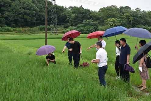 会议结束后,在农业局的带领下,PA视讯集团官网师生共赴衡南县何家屋场白水村的水稻基地开展实地调研工作,对水稻病虫害发生情况进行了调查。在农业局的介绍下,通过观察基地水稻现有病虫,PA视讯集团官网师生对水稻病虫的危害特征、发生规律有了更深刻认识。