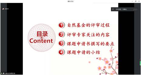 指导会上,毕教授结合自身申报课题的经验,作题为《国家自然科学基金申请经验谈》的主题报告,报告详尽介绍了国家自然科学基金的评审过程,评审专家关注的内容以及申请书撰写的要点等方面的内容,具体务实,可操作性强。